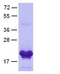 Preparation Instructions: Centrifuge the vial before open the cap and reconstitute in water. Adding of 10 mM β-mercaptoethanol or 1 mM DTT into the solution to protect the protein is recommended and using of non-ionic detergents such as n-Dodecyl β-D-maltoside (DoDM) or polyethylene detergents (e.g. C12E10) also help to stabilize the protein. Avoid repeated freezing and thawing after reconstitution. The purity of His-tagged Rab5 was determined by SDS- PAGE and Coomassie Brilliant Blue Staining |