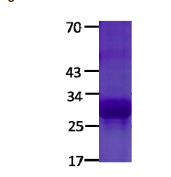 The purity of His-tagged NFE2L2 E79K was determined by SDS-PAGE and Coomassie Brilliant Blue Staining. |