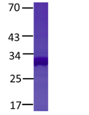 The purity of His-tagged NFE2L2 E79Q was determined by SDS-PAGE and Coomassie Brilliant Blue Staining. |