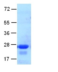 Preparation Instructions: Centrifuge the vial before open the cap and reconstitute in water. Adding of 10 mM β-mercaptoethanol or 1 mM DTT into the solution to protect the protein is recommended and using of non-ionic detergents such as n-Dodecyl β-D-maltoside (DoDM) or polyethylene detergents (e.g. C12E10) also help to stabilize the protein. Avoid repeated freezing and thawing after reconstitution. The purity of His-tagged Arf6 Δ12Q67L mutant was determined by SDS-PAGE and Coomassie Brilliant Blue Staining. |