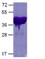Preparation Instructions: Centrifuge the vial before open the cap and reconstitute in water. Adding of 10 mM β-mercaptoethanol or 1 mM DTT into the solution to protect the protein is recommended and using of non-ionic detergents such as n-Dodecyl β-D-maltoside (DoDM) or polyethylene detergents (e.g. C12E10) also help to stabilize the protein. Avoid repeated freezing and thawing after reconstitution. The purity of His-tagged Gα13 was determined by SDS- PAGE and Coomassie Brilliant Blue Staining. |