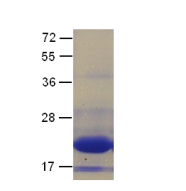 Preparation Instructions: Centrifuge the vial before open the cap and reconstitute in water. Adding of 10 mM β-mercaptoethanol or 1 mM DTT into the solution to protect the protein is recommended and using of non-ionic detergents such as n-Dodecyl β-D-maltoside (DoDM) or polyethylene detergents (e.g. C12E10) also help to stabilize the protein. Avoid repeated freezing and thawing after reconstitution. The purity of His-tagged Arl3 was determined by SDS- PAGE and Coomassie Brilliant Blue Staining. |
