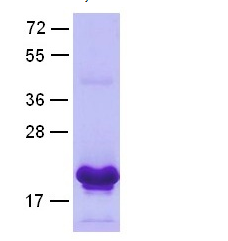 Preparation Instructions: Centrifuge the vial before open the cap and reconstitute in water. Adding of 10 mM β-mercaptoethanol or 1 mM DTT into the solution to protect the protein is recommended and using of non-ionic detergents such as n-Dodecyl β-D-maltoside (DoDM) or polyethylene detergents (e.g. C12E10) also help to stabilize the protein. Avoid repeated freezing and thawing after reconstitution. The purity of His-tagged Rab5 was determined by SDS- PAGE and Coomassie Brilliant Blue Staining |