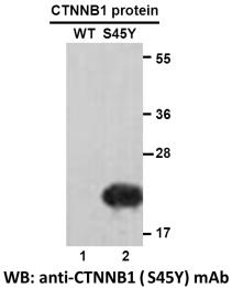 Immunogen: A synthetic peptide from the internal region of CTNNB1 which includes the mutation of S45Y, human origin. |