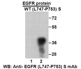 ![]() | Western blot analysis of recombinant EGFR(L747-P753) S and wildtype proteins. Purified His-tagged EGFR(L747-P753)S protein (702-987) and wild-type protein (702-987) were blotted with anti EGFR(L747-P753)S mouse antibody (Cat. #26287). |