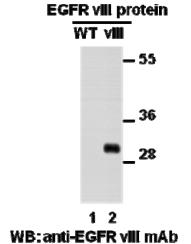 Immunogen: A synthetic peptide from the internal region of EGFR which includes the mutation of vIII, human origin. |