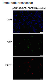 ![]() | Immunofluorescence of cells expressing FGFR1 NTerminal proteins with Anti FGFR1 NTerminal antibody. HEK293T cells were transfected with pCDNA3-GFP-FGFR1 NTerminal plasmid, then fixed and stained with Anti FGFR1 NTerminal monoclonal antibody (Cat. #26386). |