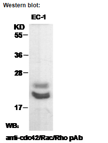 ![]() | EC-1 whole-cell lysate was used for Western blot with the polyclonal Rho family pan antibody (cat # 21035). |