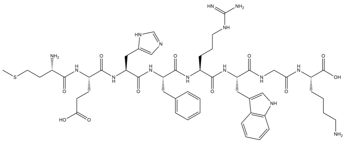体外研究 (In Vitro) | α-melanocyte stimulating hormone (MSH) induces the differentiation of mouse epidermal melanocytes in vivo and in vitro. Adrenocorticotropic hormone (ACTH) possesses the same amino acid sequence as MSH does. α-MSH induces the differentiation of mouse epidermal melanocytes in vivo and in vitro. ACTH (4-11) loses almost all activity for the binding to melanocortin receptor 1 (MC1R)[1]. |